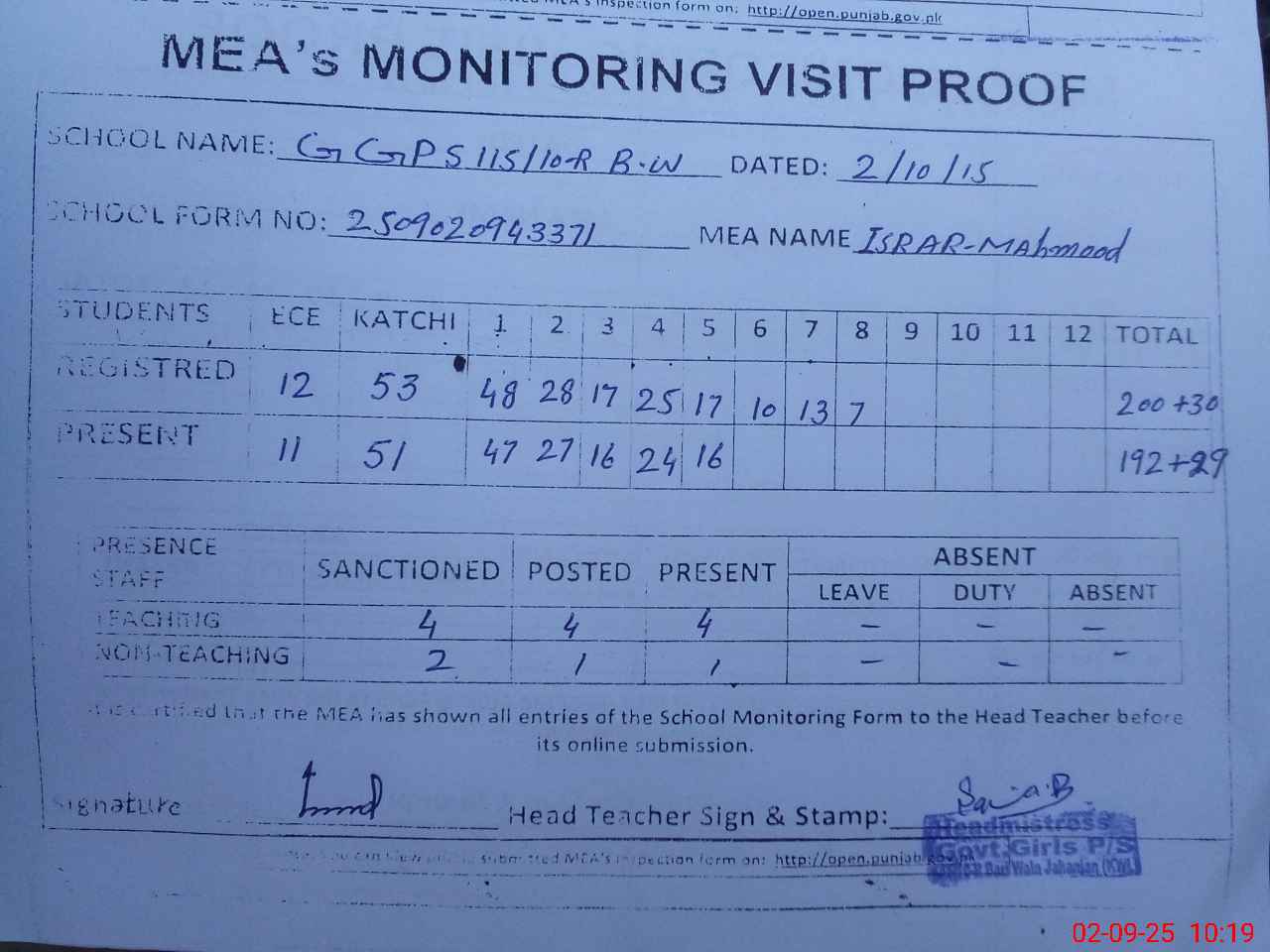 | EMIS Code: 36440518 | Name of School: GGPS 115/10-R BARI WALA, JAHANIAN | |||