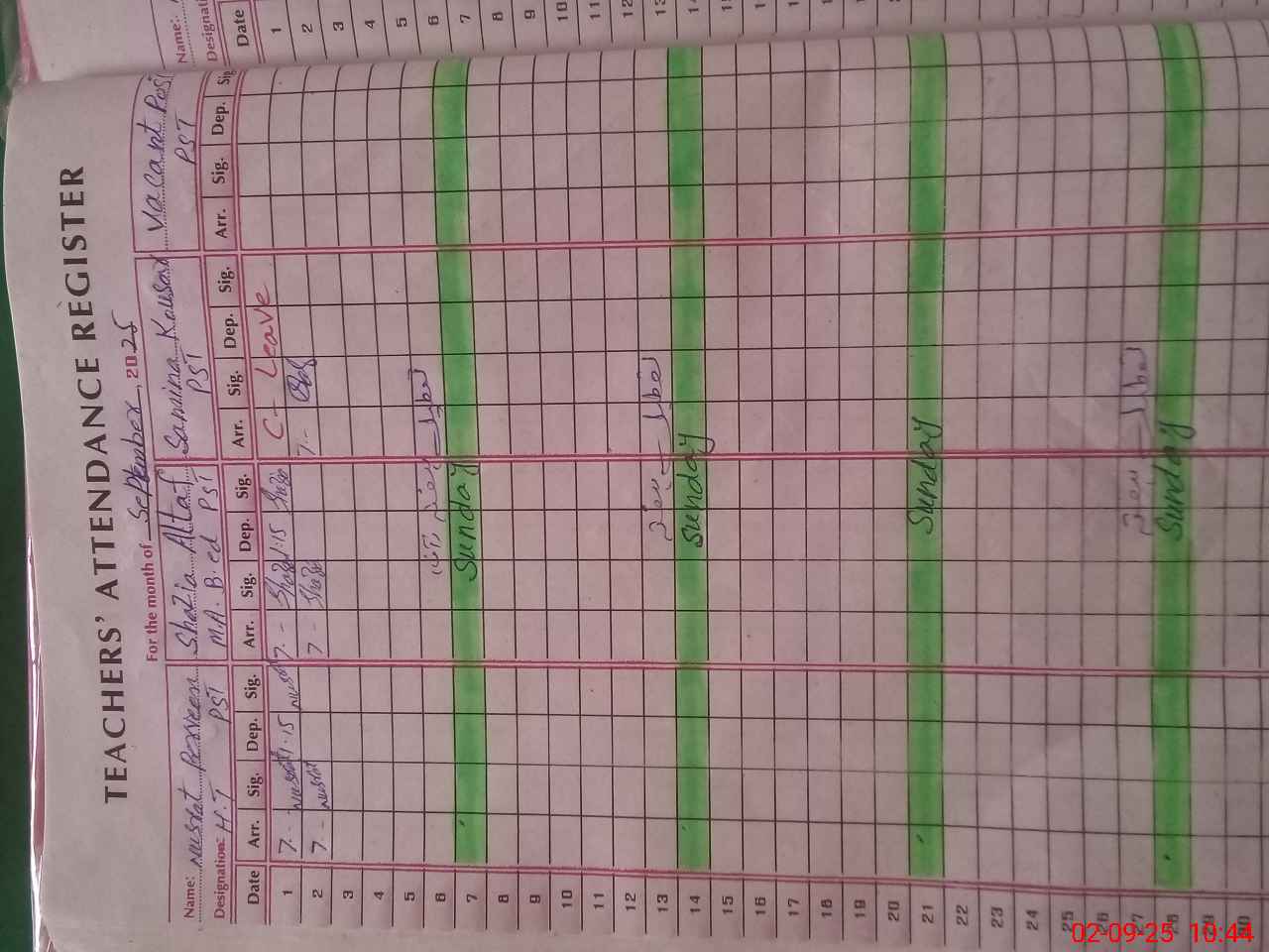 | CNIC | Full Name | Designation | R/C | Absence During Last Calender Month |