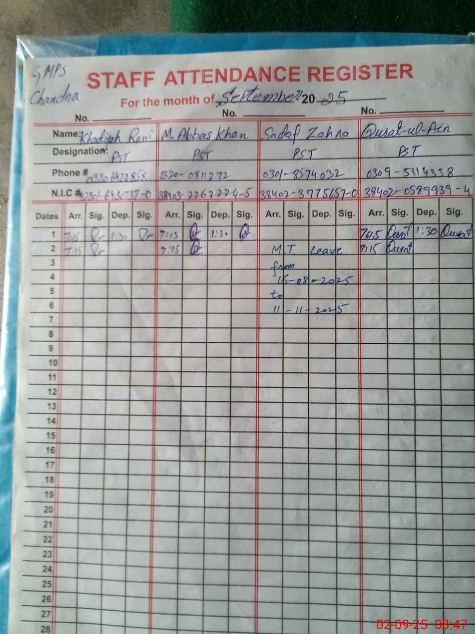 | Name: KH**** RA**** Designation: (School Headmaster's/Headmistress's) PST Phone/Cell Number: 03**** |