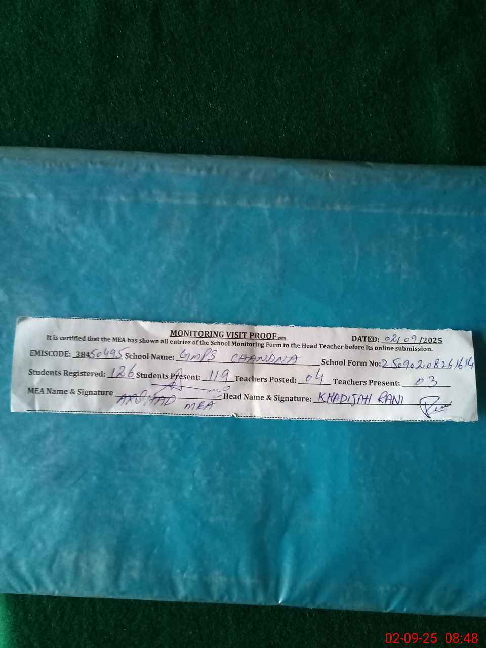 | EMIS Code: 38450495 | Name of School: GMPS CHANDNA | |||