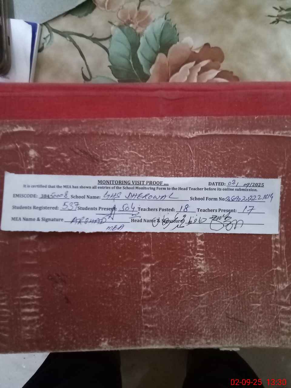 | EMIS Code: 38450008 | Name of School: GHS DHEROWAL | |||