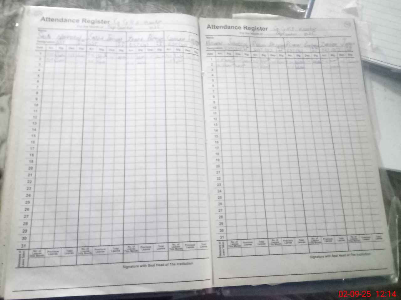 | CNIC | Full Name | Designation | R/C | Absence During Last Calender Month |