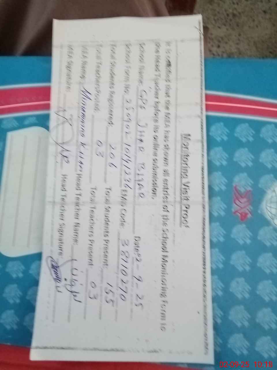 | Attendance Register | Head Teacher | MEA with School | Visit Proof |