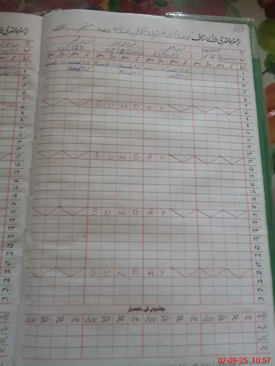 | CNIC | Full Name | Designation | R/C | Absence During Last Calender Month |