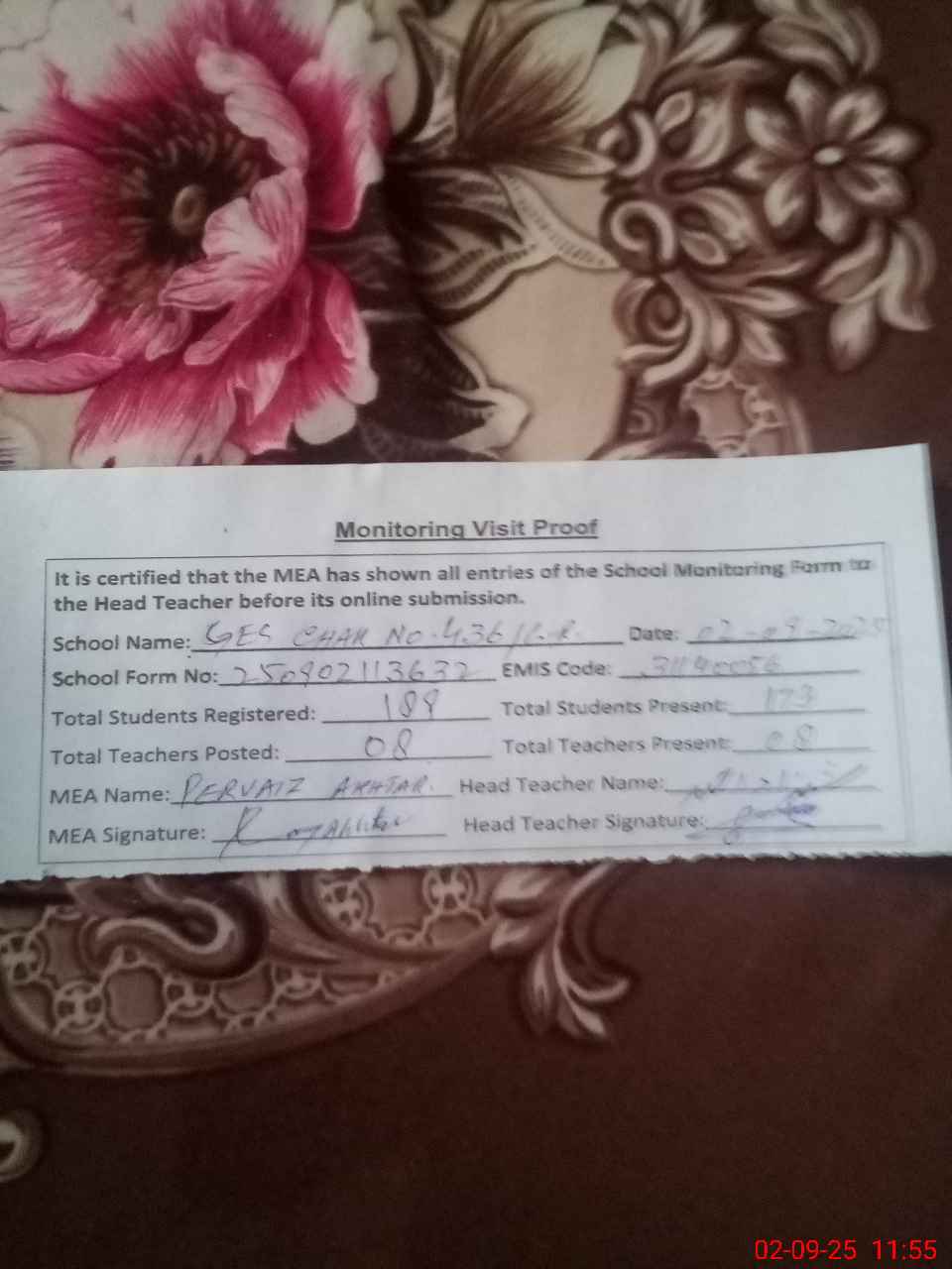 | EMIS Code: 31140056 | Name of School: GES CHAK NO. 436/6-R | |||