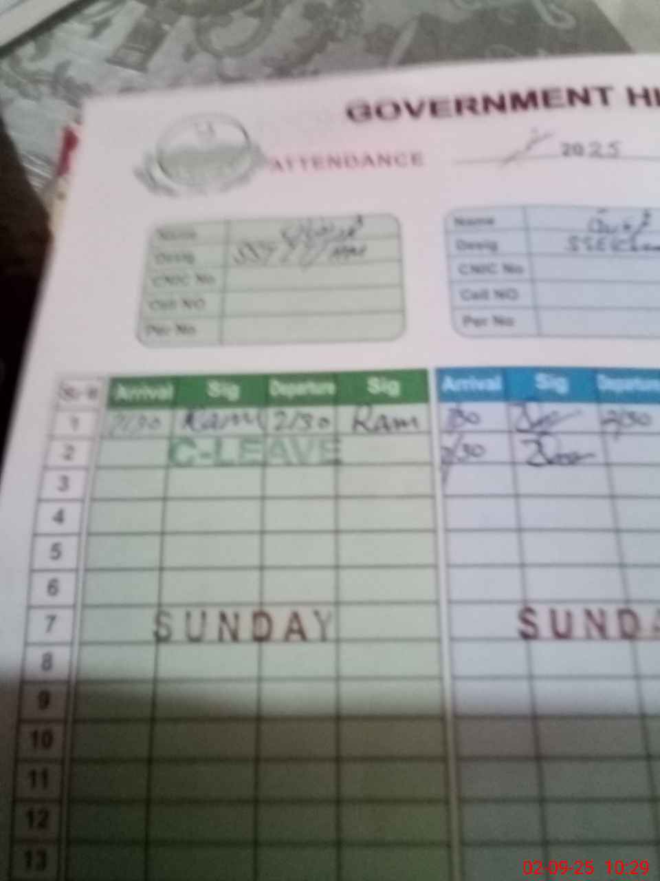 | CNIC | Full Name | Designation | R/C | Absence During Last Calender Month |