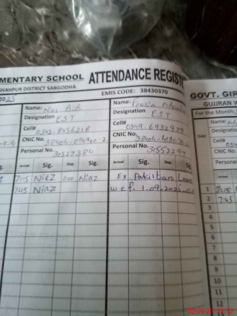 | Name: NU**** FA**** Designation: (School Headmaster's/Headmistress's) SST (SCIENCE) Phone/Cell Number: 03**** |