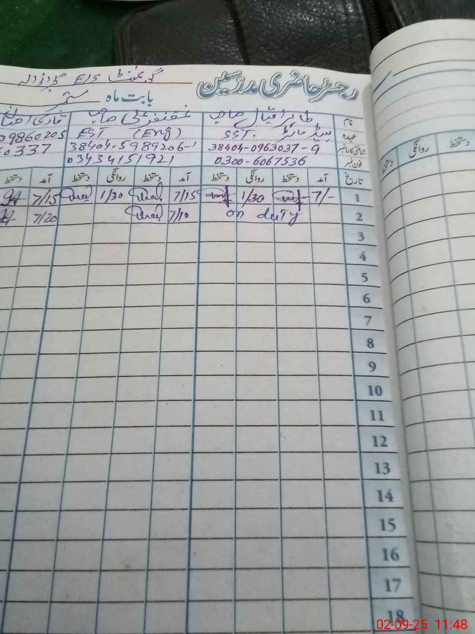 | Name: TA**** IQ**** Designation: (School Headmaster's/Headmistress's) S.S.T.(Phy) Phone/Cell Number: 03**** |