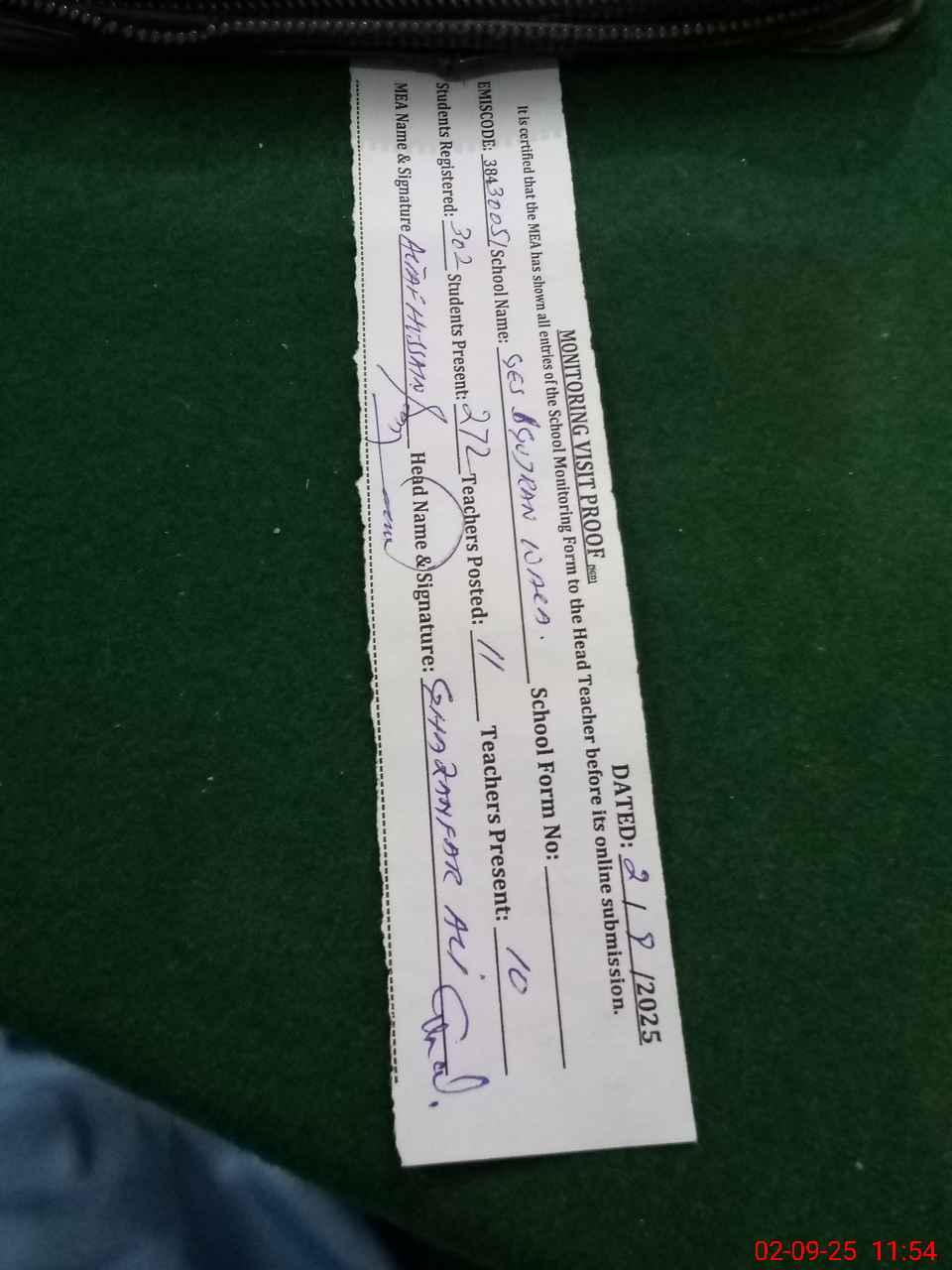 | Monitoring Date: 02-09-2025 | Start Time: 02-09-2025 11:22 AM | End Time: 02-09-2025 11:54 AM | Name of MEA: AL**** HU**** | |