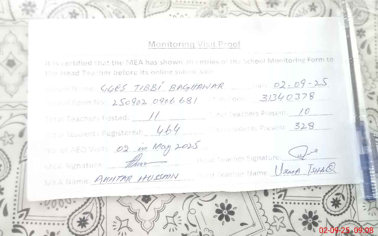 | EMIS Code: 31340378 | Name of School: GGES TIBBI BAGHAWER | |||
