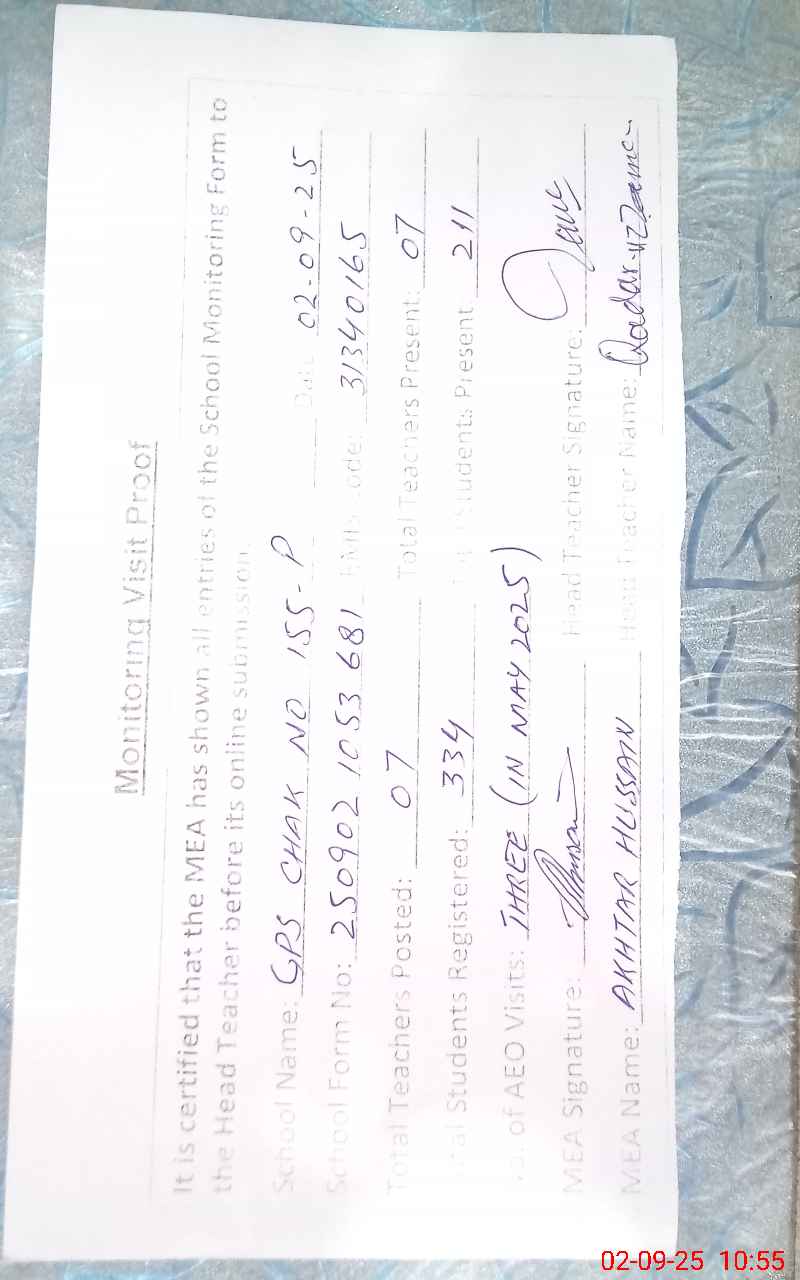 | EMIS Code: 31340165 | Name of School: GPS CHAK NO 155/P | |||