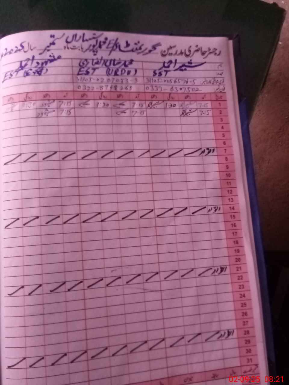 | Name: SH**** AH**** Designation: (School Headmaster's/Headmistress's) SST (G) Phone/Cell Number: 03**** |
