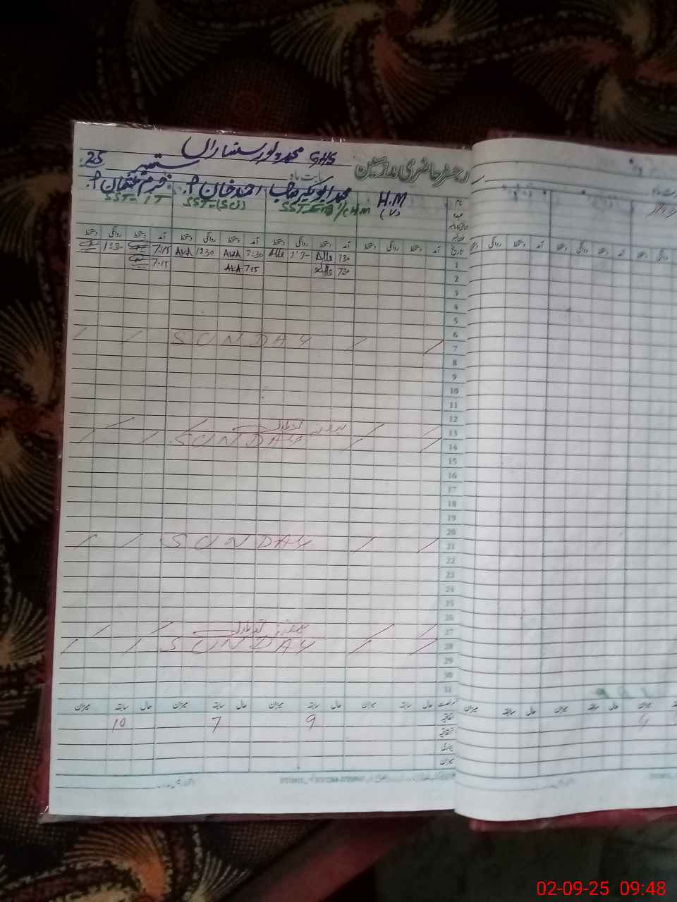 | CNIC | Full Name | Designation | R/C | Absence During Last Calender Month |