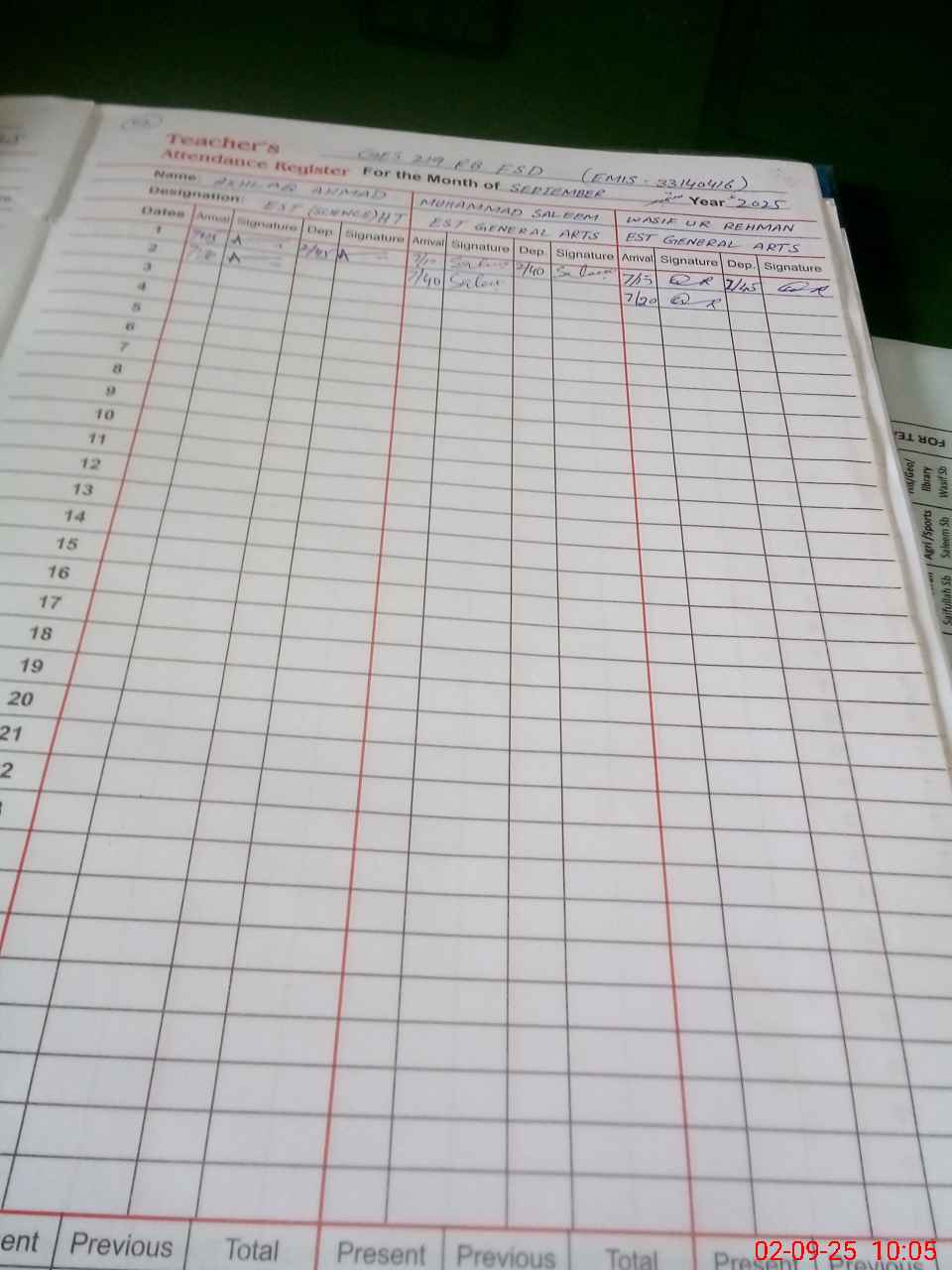 | CNIC | Full Name | Designation | R/C | Absence during last cal. month |