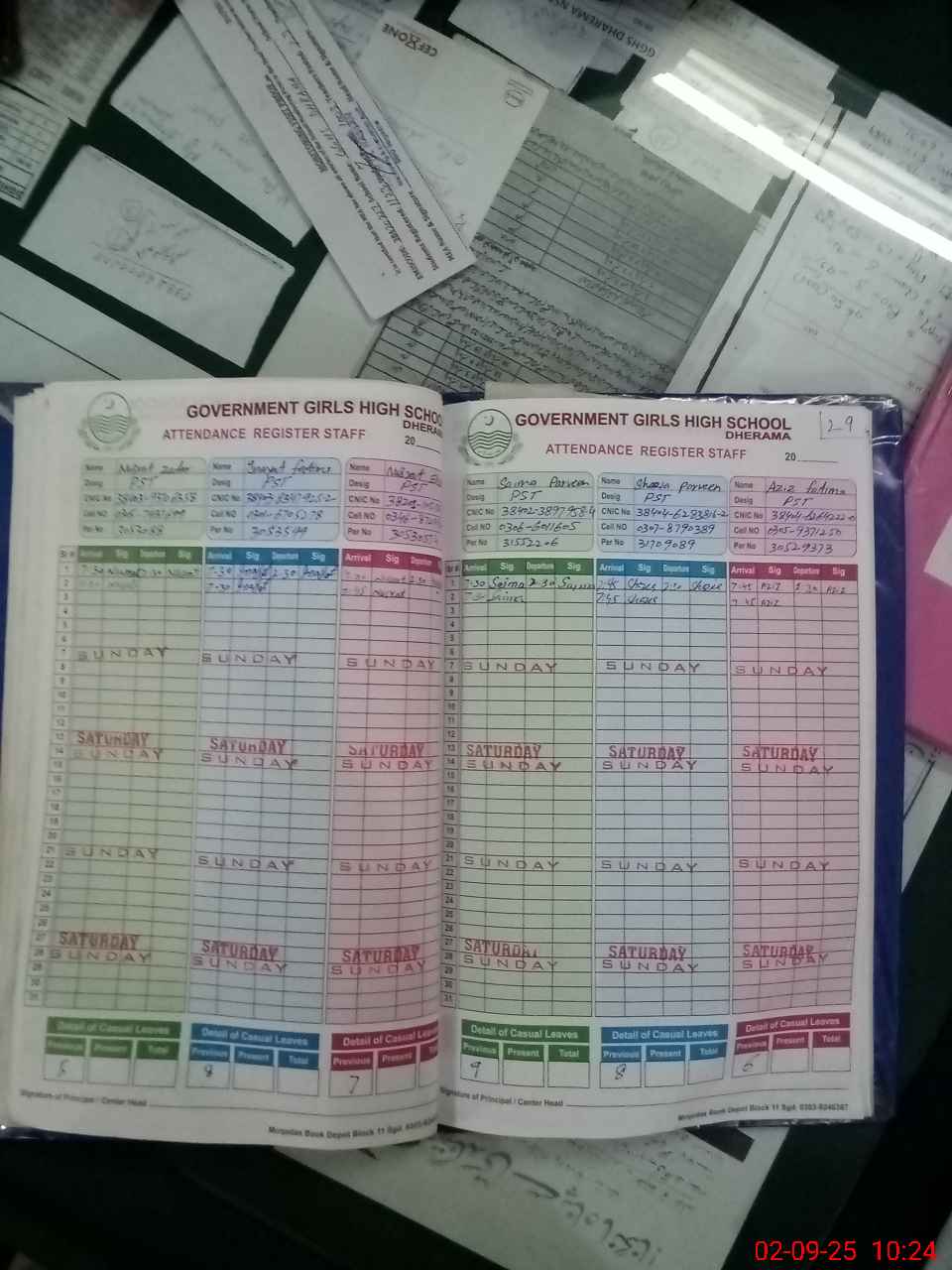 | CNIC | Full Name | Designation | R/C | Absence During Last Calender Month |