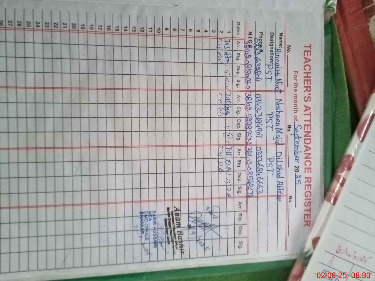 | Name: No**** Ma**** Designation: (School Headmaster's/Headmistress's) P S T Phone/Cell Number: 03**** |
