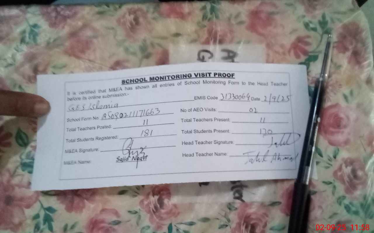 | EMIS Code: 31330064 | Name of School: GES ISLAMIA ELEMENTARY | |||