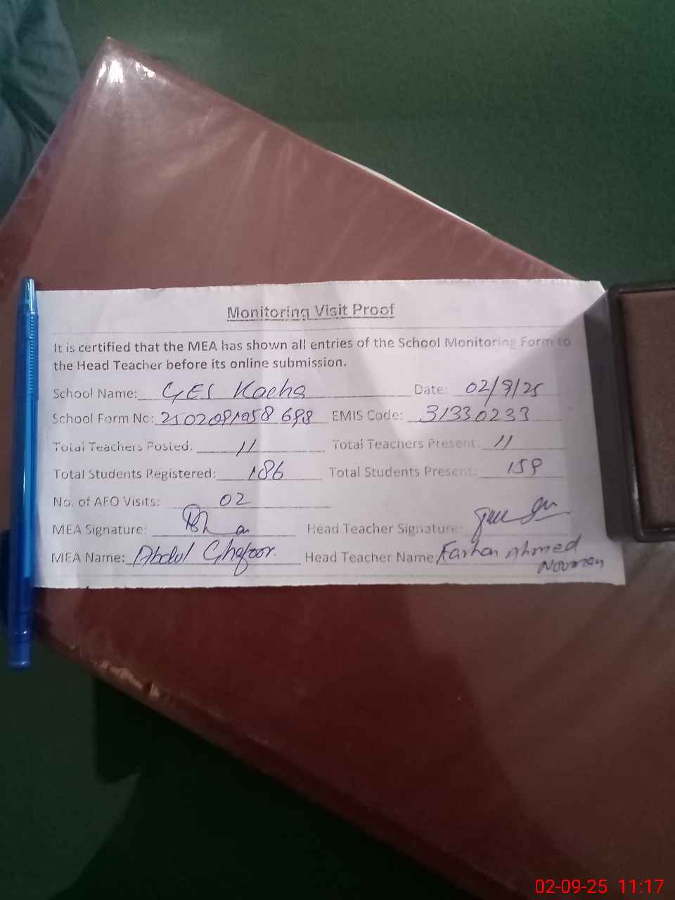 | EMIS Code: 31330233 | Name of School: GES BASTI KACHA | |||