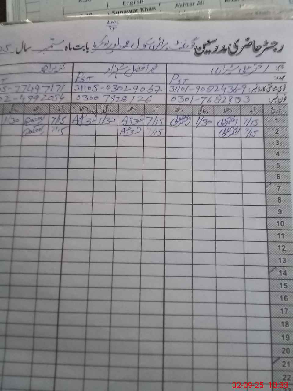| Name: AK**** AL**** Designation: (School Headmaster's/Headmistress's) PST Phone/Cell Number: 03**** |