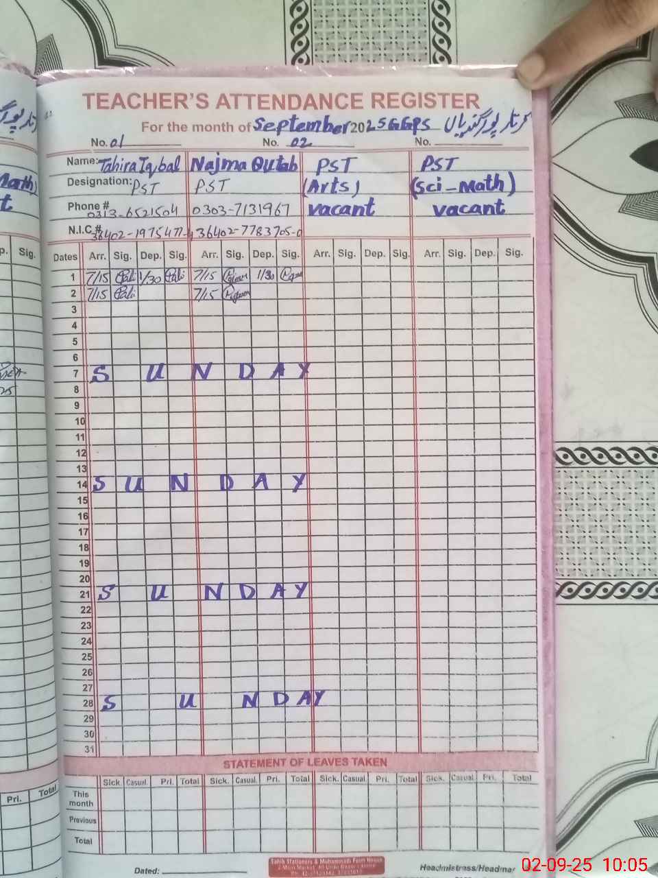 | Name: Ta**** Iq**** Designation: (School Headmaster's/Headmistress's) PST Phone/Cell Number: 03**** |