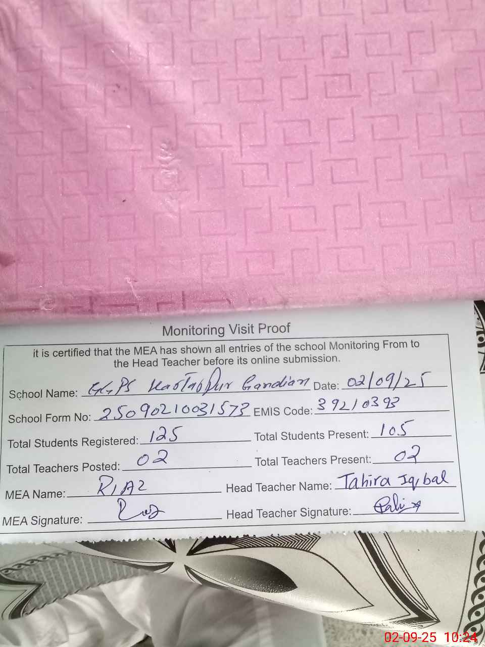 | EMIS Code: 39210393 | Name of School: GGPS KARTAR PUR GANDIAN | |||