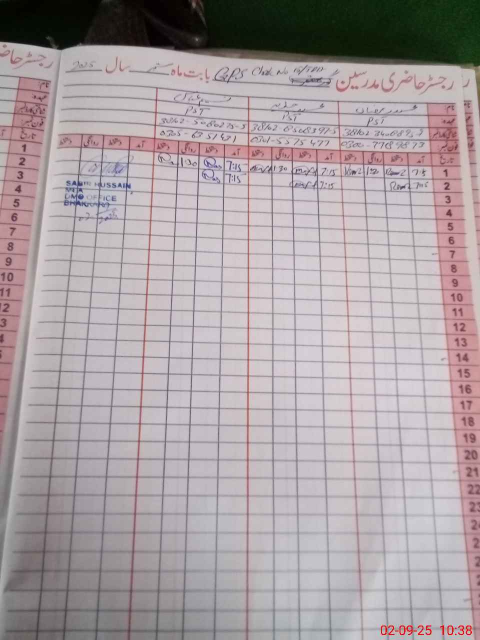 | CNIC | Full Name | Designation | R/C | Absence during last cal. month |