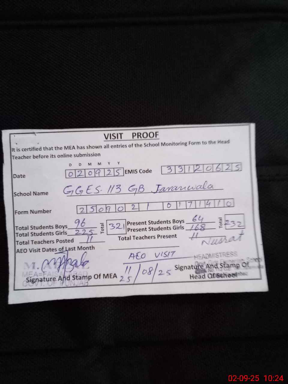 | Certified that this School was Inspected by the Undersigned MEA/DMO Today and the Information Stated Above is as Per Record. | |||||