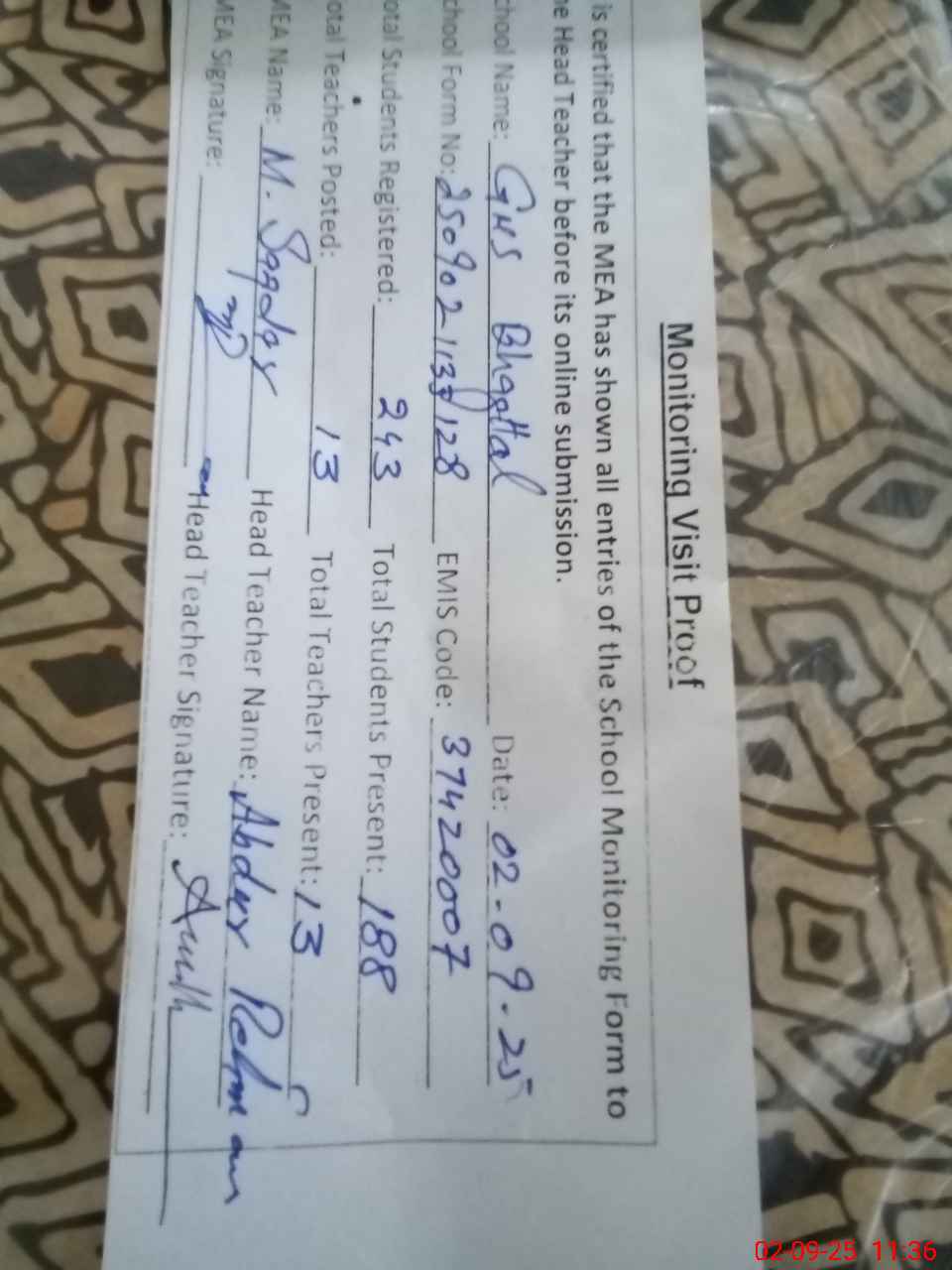 | EMIS Code: 37420007 | Name of School: GHS BHAGTAL | |||