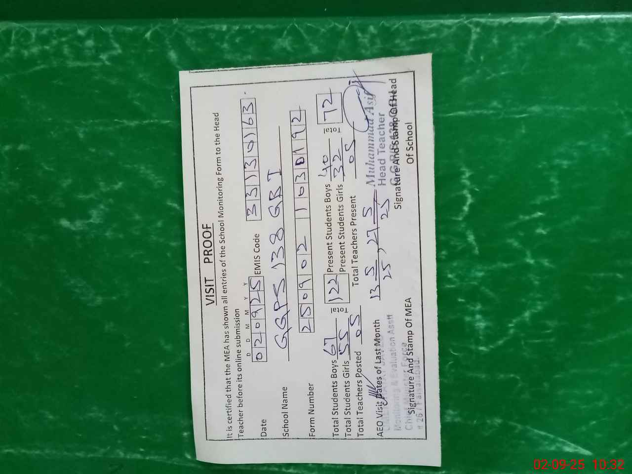| EMIS Code: 33130163 | Name of School: GGPS CHAK 138 GB I SAMUNDRI | |||