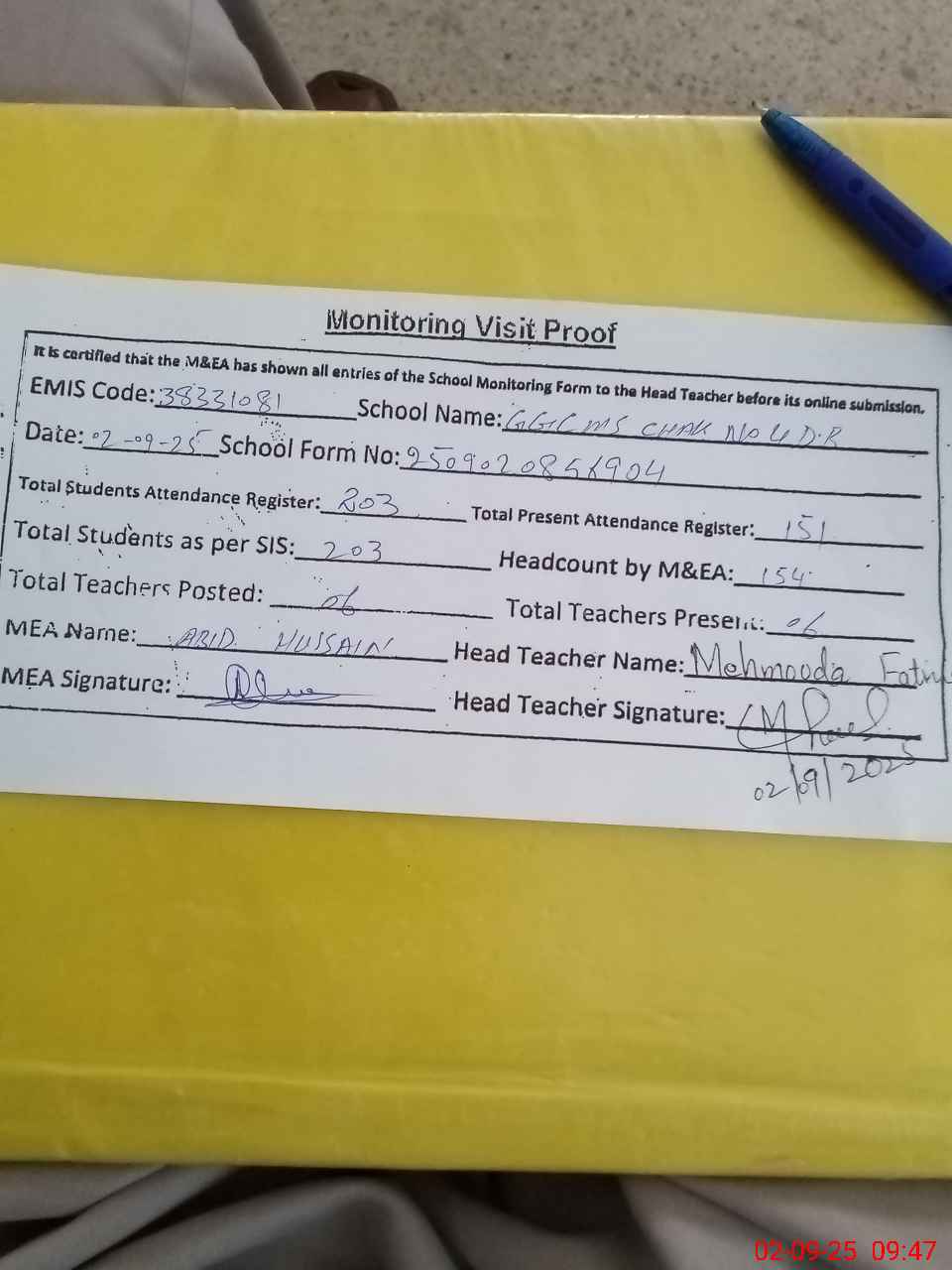 | EMIS Code: 38331081 | Name of School: GGCMS CHAK NO.4 DB | |||