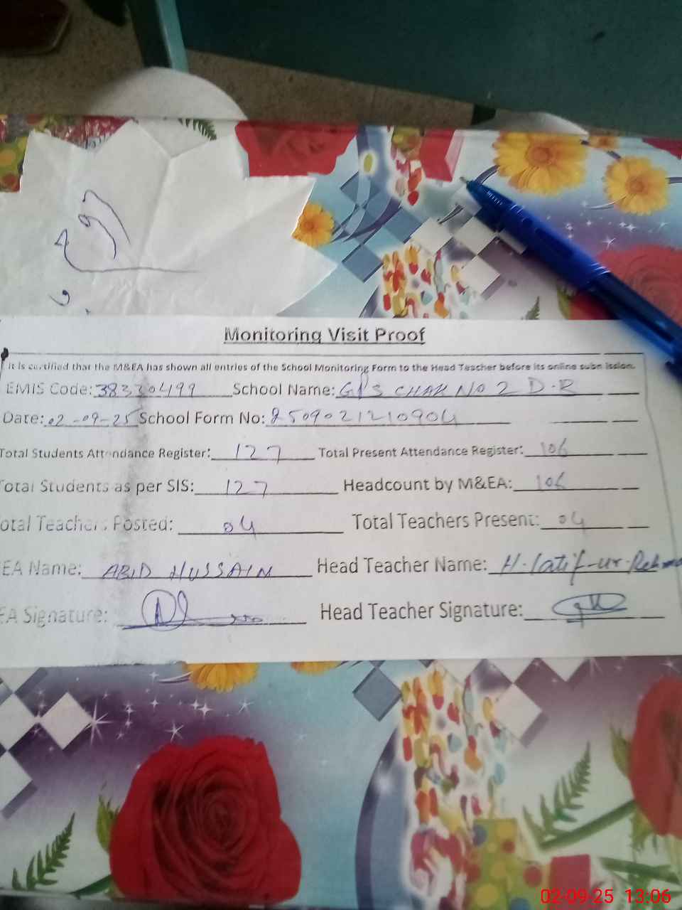 | EMIS Code: 38330499 | Name of School: GPS CHAK NO 2 DB | |||
