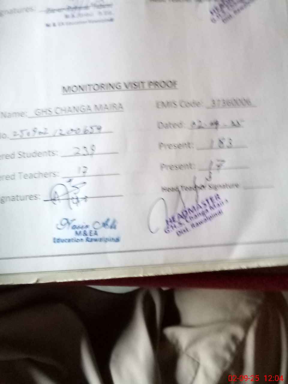 | EMIS Code: 37360006 | Name of School: GHS CHANGA MIRA | |||