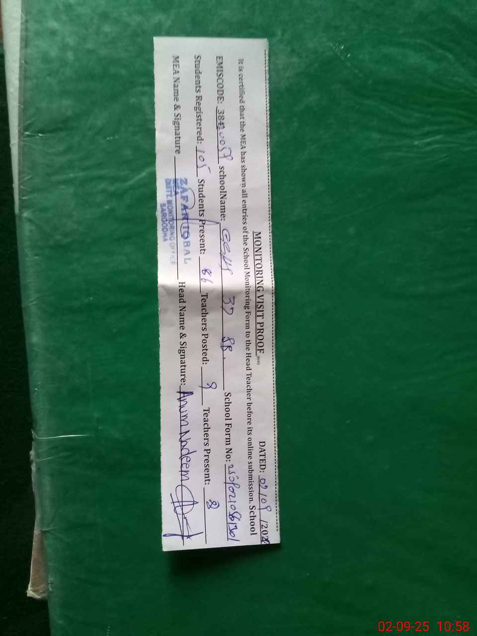 | EMIS Code: 38420059 | Name of School: GGHS CHAK NO.37 SB | |||