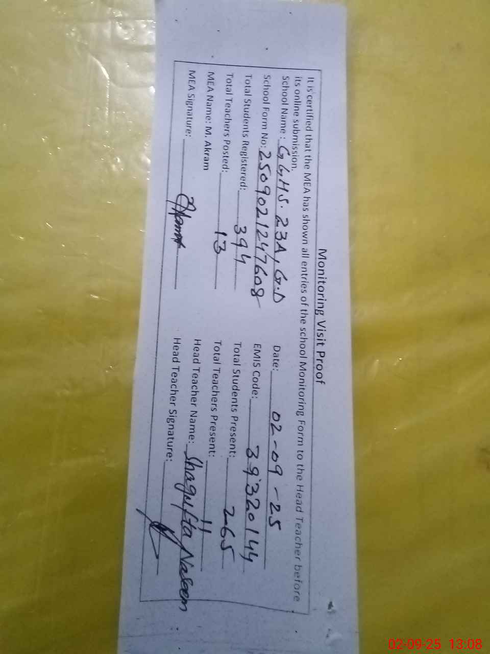 | EMIS Code: 39320144 | Name of School: GGHS 23-A/G.D | |||