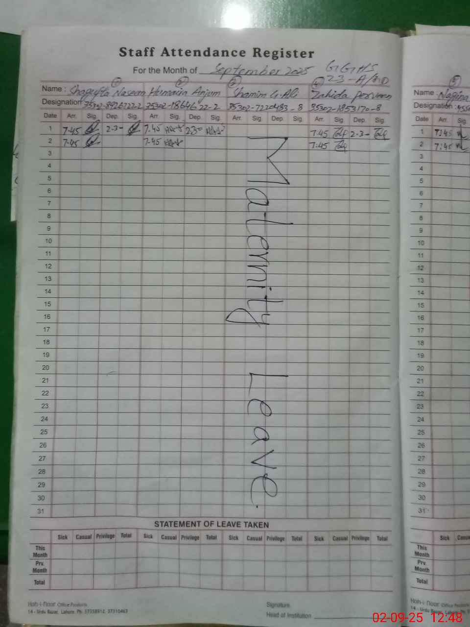| Leave | Duty | Absent | Maternity | Medical | Ex- Pak |