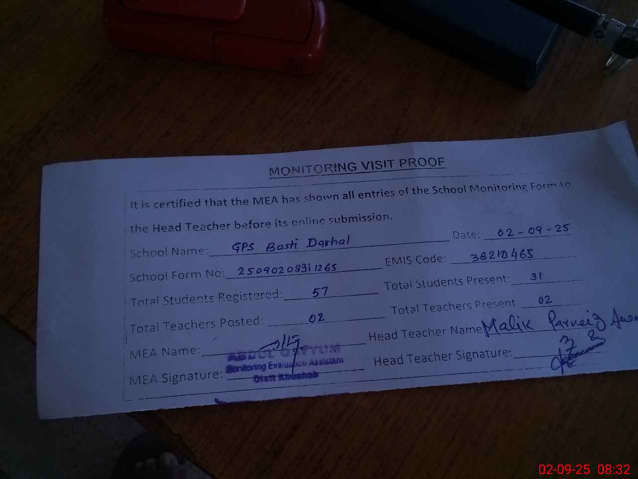 | EMIS Code: 38210465 | Name of School: GPS BASTI DARHAL | |||