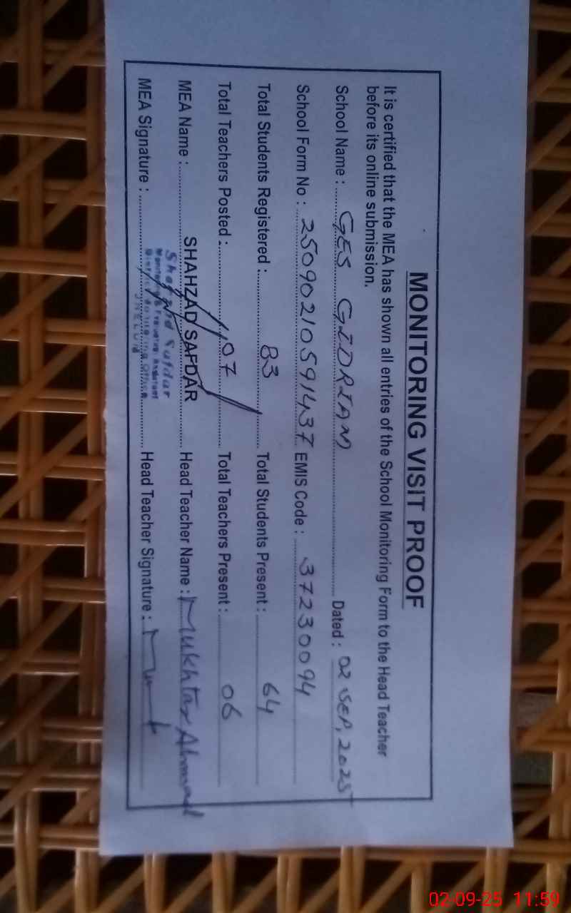 | EMIS Code: 37230094 | Name of School: GES GIDRIAM | |||
