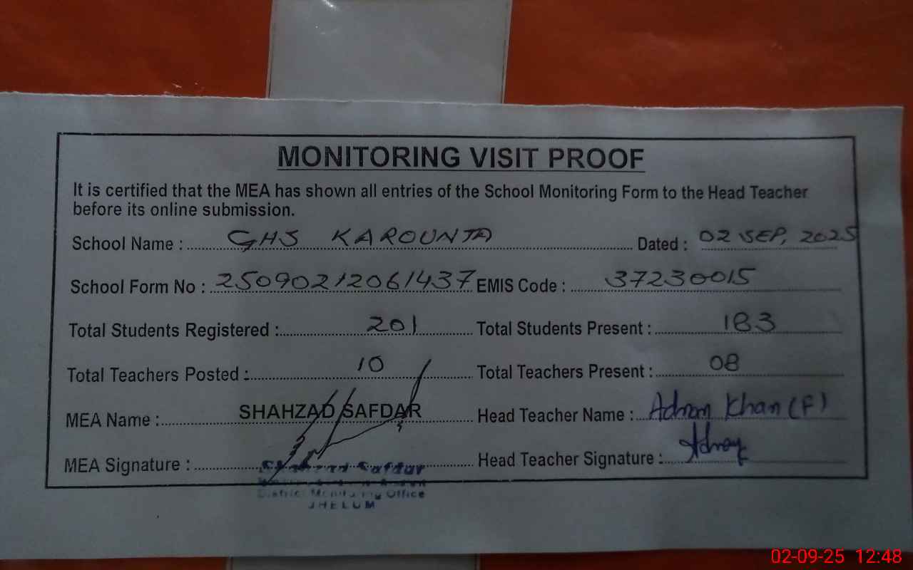 | Certified that this School was Inspected by the Undersigned MEA/DMO Today and the Information Stated Above is as Per Record. | |||||