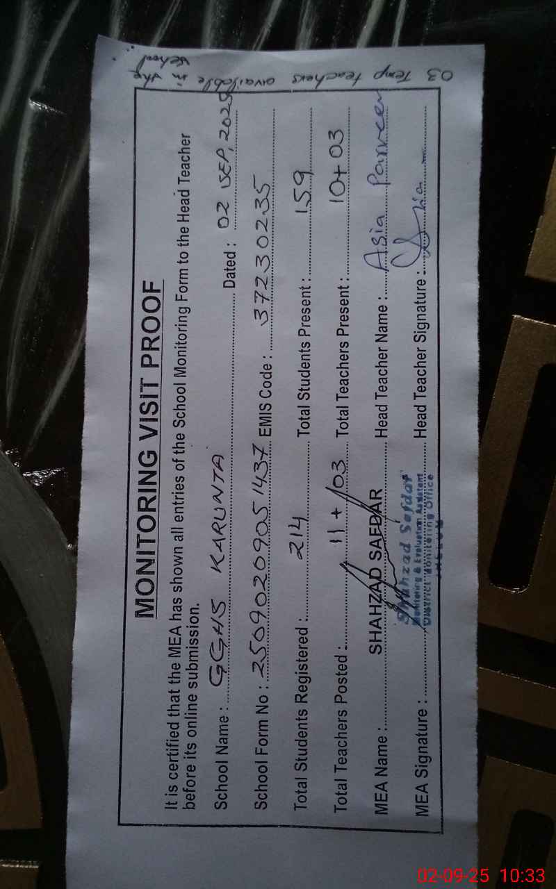 | EMIS Code: 37230235 | Name of School: GGHS KARUNTA | |||