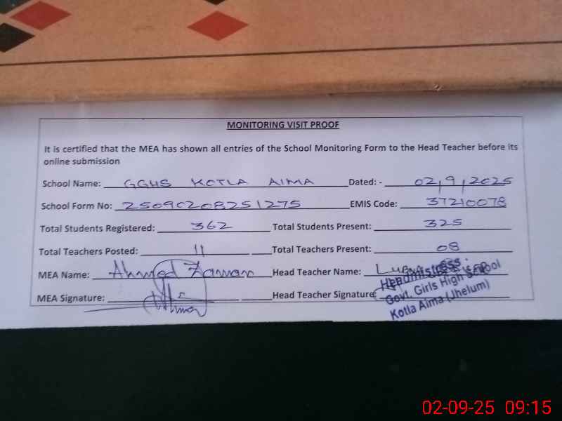 | EMIS Code: 37210078 | Name of School: GGHS KOTLA AIMA | |||