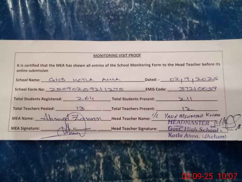 | EMIS Code: 37210059 | Name of School: GHS KOTLA AIMA | |||