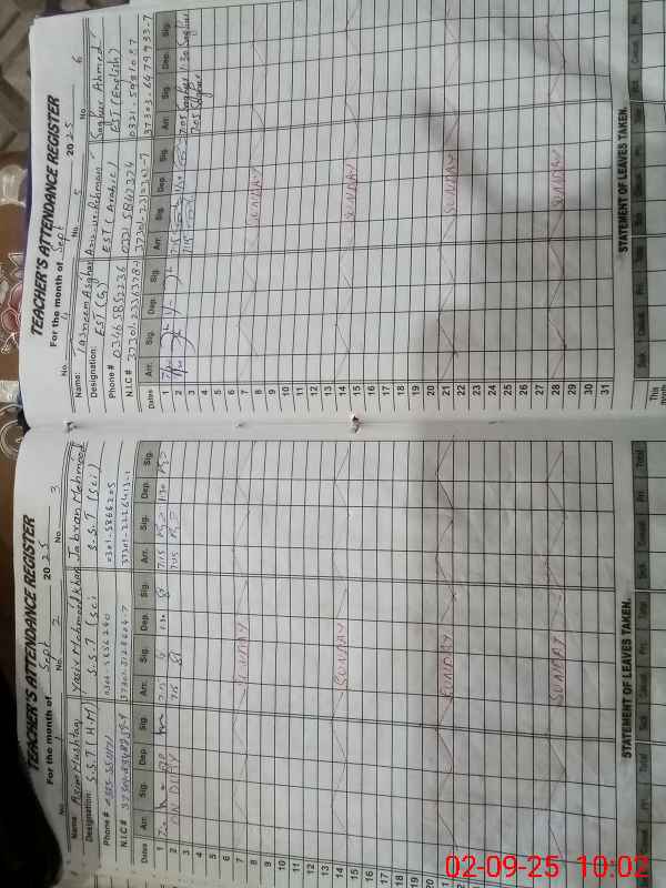 | Remarks (Use Separate Page if Required): Khizar hayat chokidar attached here from GGHS Toor | |||||