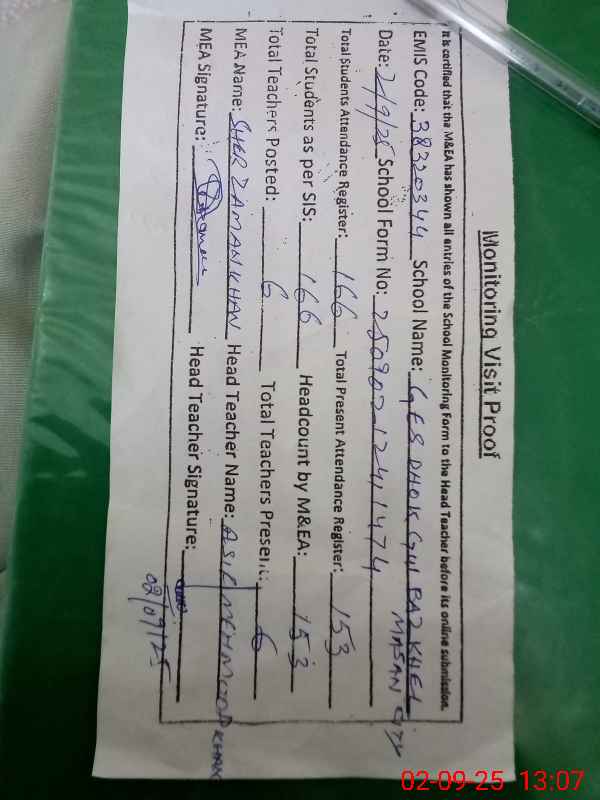 | EMIS Code: 38320344 | Name of School: GES DHOK GULBAZ KHEL MASAN CITY | |||