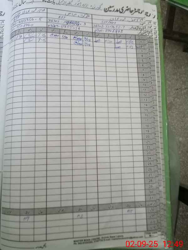 | CNIC | Full Name | Designation | R/C | Absence During Last Calender Month |