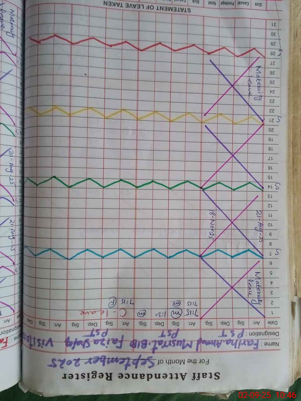 | 33**** | Fa**** Ah**** | PST | Regular | 11 | 0 | 0 | 11 | 0 | 0 | 0 | 0 | 0 | Maternity |