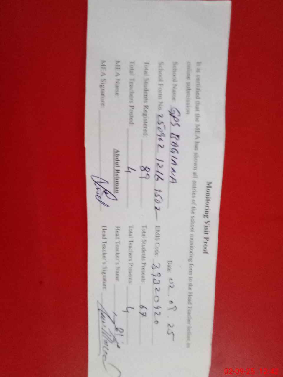 | EMIS Code: 39320420 | Name of School: GPS BAGIANA | |||