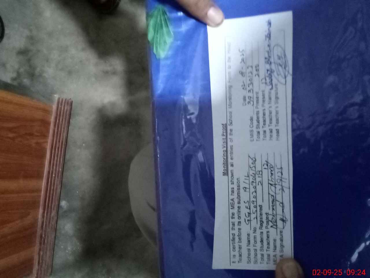| Attendance Register | Head Teacher | MEA with School | Visit Proof |