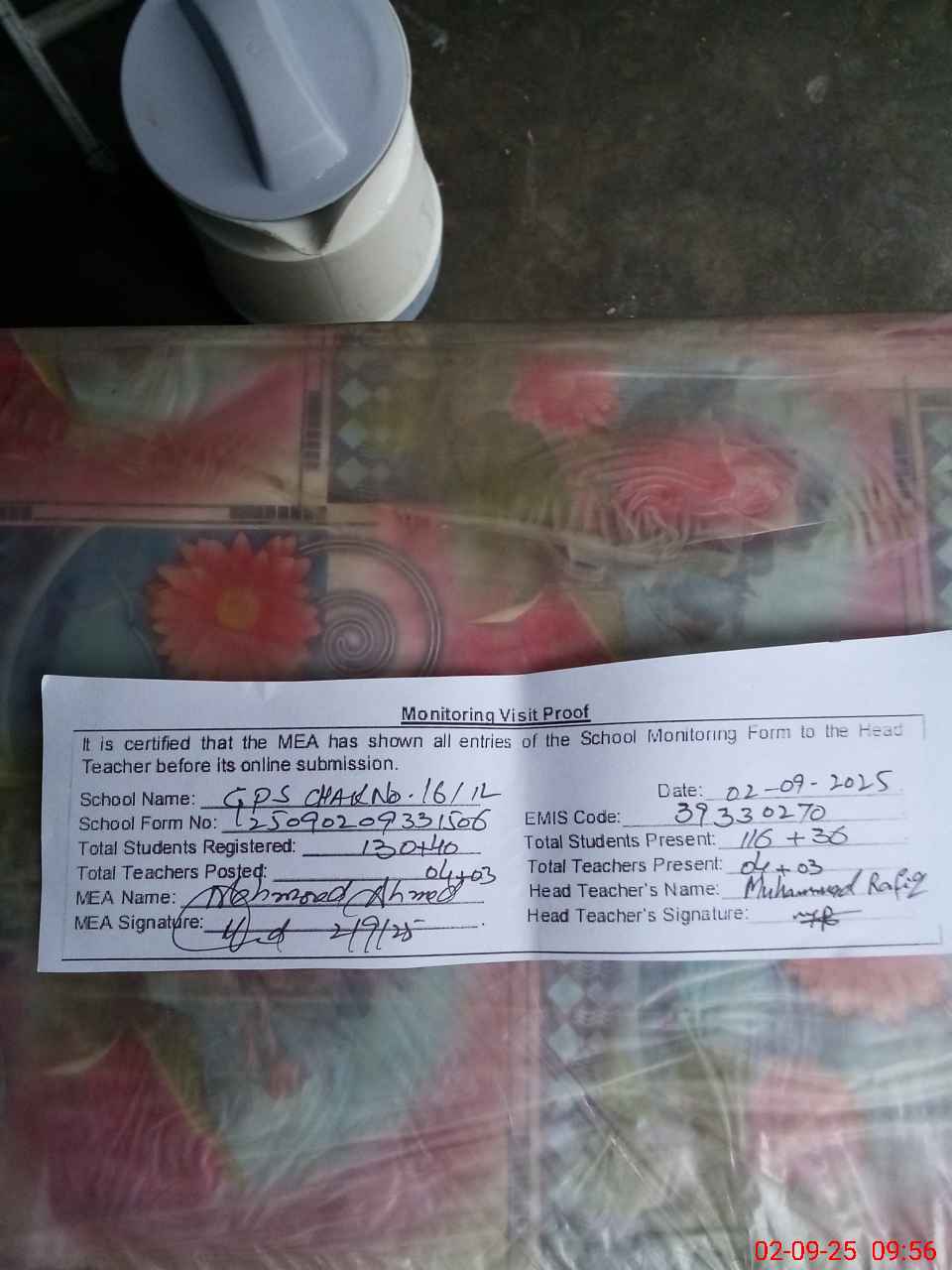 | EMIS Code: 39330270 | Name of School: GPS CHAK NO. 6/1-L | |||