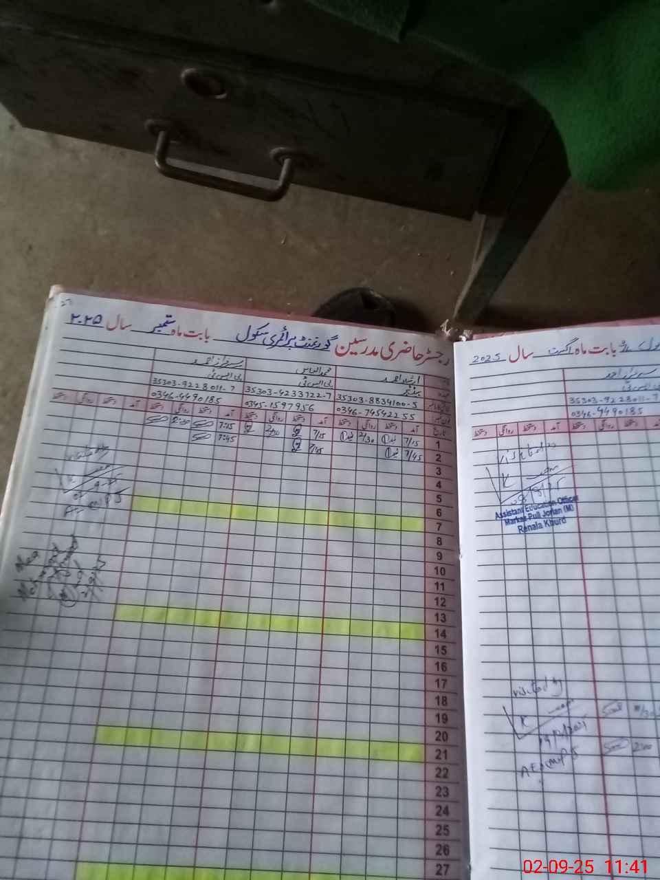 | Name: IR**** AH**** Designation: (School Headmaster's/Headmistress's) PTC/JV Phone/Cell Number: 03**** |