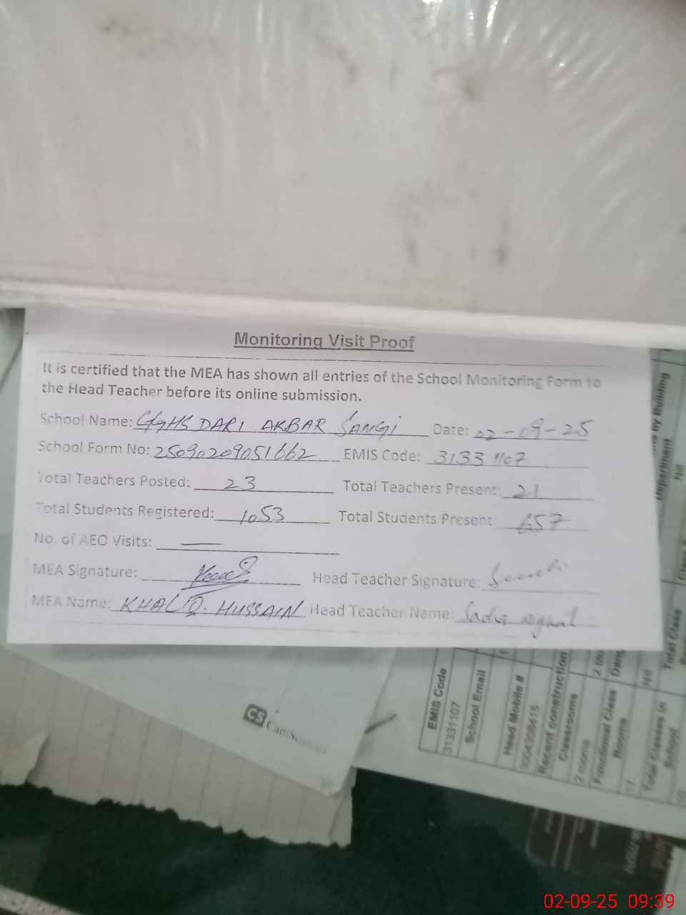 | EMIS Code: 31331107 | Name of School: GGHS DARI ALI AKBAR SANGHI | |||